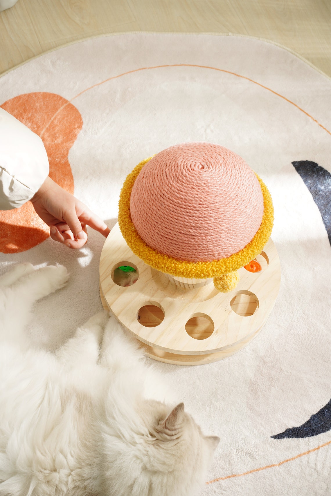 Wood Cat Scratcher| Sisal mushroom cat scratching post| Modern Cat furniture|Interactive toy | Turntable | Cat Tree |Wooden Base &wood ball